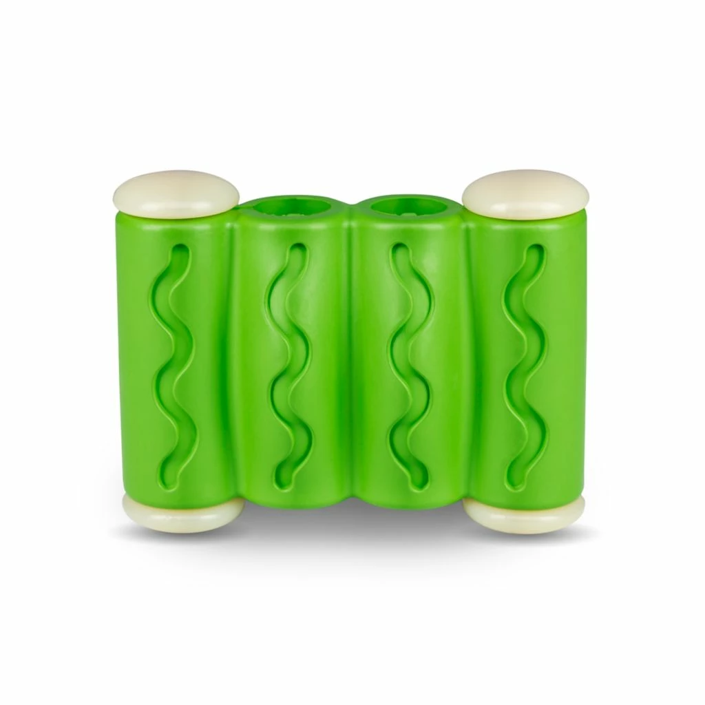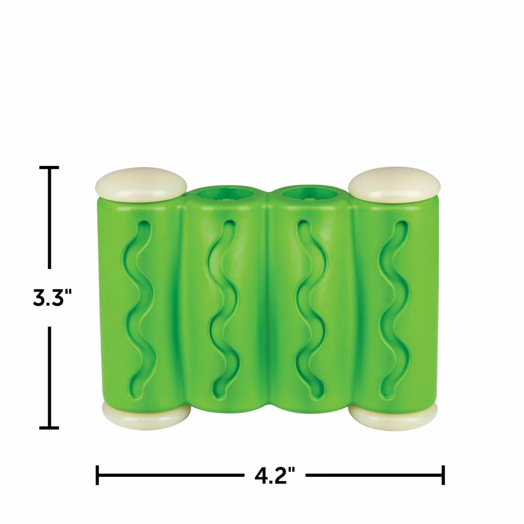 - Entertaining – This interactive dog toy’s two openings work with bully sticks and treat sticks; or fill the outer grooves with your pet’s favorite smearable treat to enhance playtime and redirect chewing habits