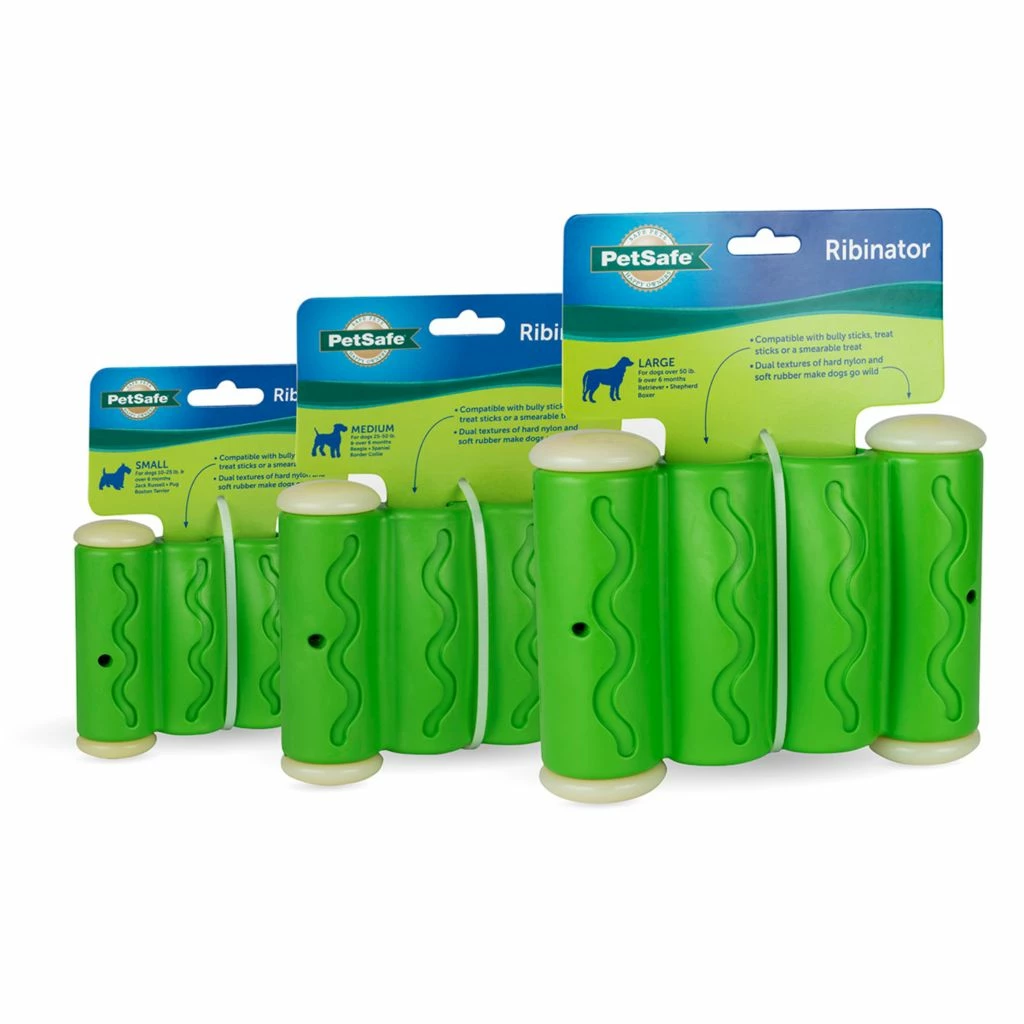 - Durable – The PetSafe® Ribinator dog toy’s tough rubber and nylon supports are what make this toy resilient enough to stand up to the most determined chewers