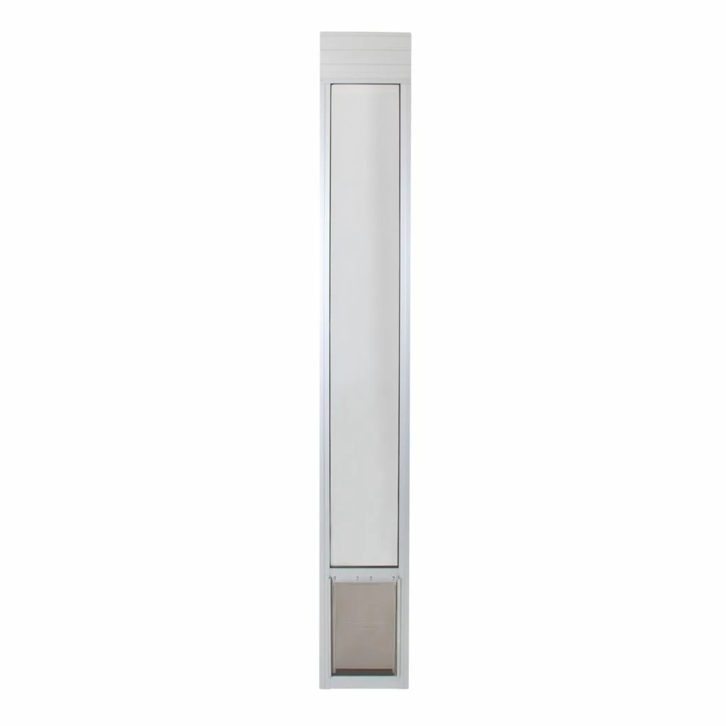 - Made to withstand heavy use, the pet door is built with weather resistant aluminum and shatter resistant tempered glass