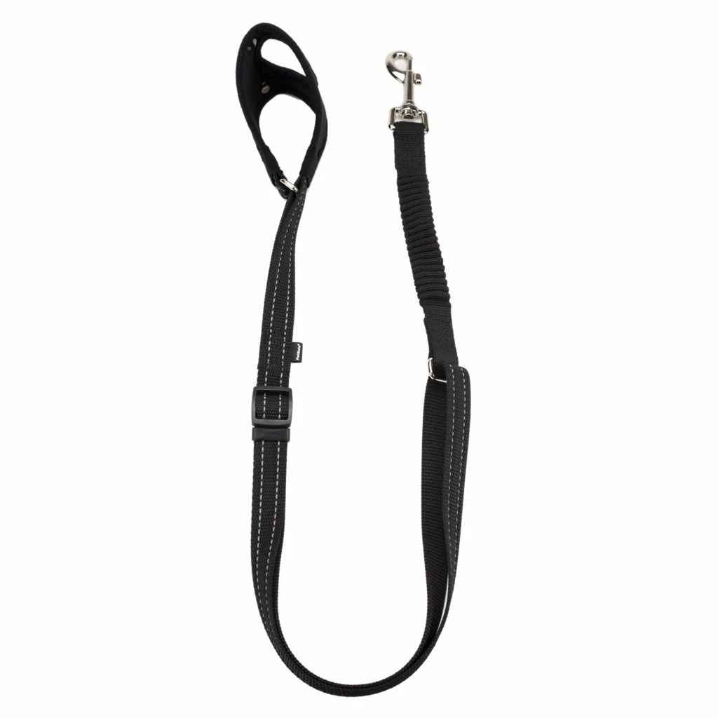 - Built-in bungee attachment lowers leash tension and helps prevent sudden jolts